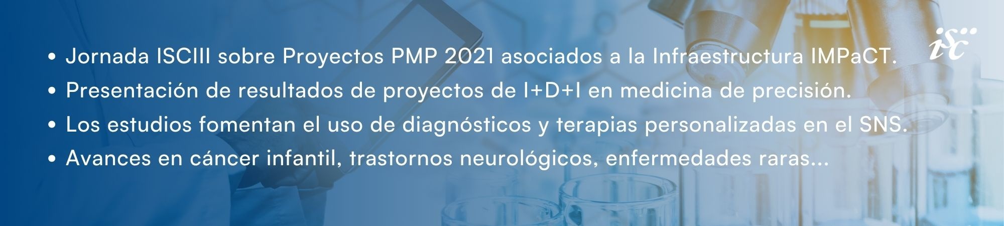 El Instituto de Salud Carlos III (ISCIII) ha acogido una jornada de presentación de resultados de Proyectos de Medicina Personalizada (convocatoria PMP del año 2021) asociados a la Infraestructura MPaCT de Medicina de Precisión, impulsada y coordinada desde el Instituto. Los proyectos PMP se financian como parte de una de las convocatorias de la Acción Estratégica en Salud (AES) del ISCIII, la principal herramienta para financiar en España investigación en salud y con cargo a los Fondos europeos del Plan de Recuperación, Transformación y Resiliencia.