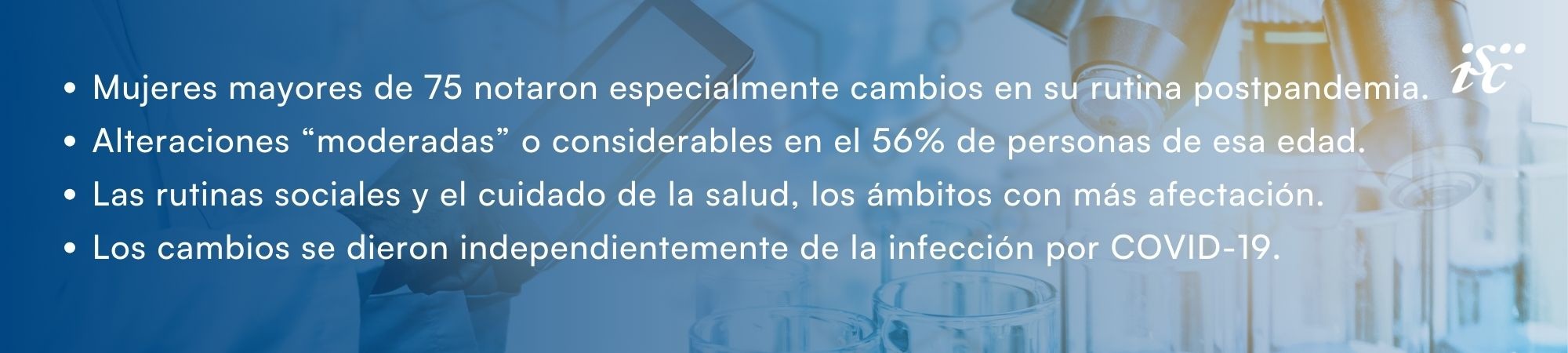 La pandemia de COVID-19 cambió las rutinas diarias del 56% de personas mayores de 75 años, especialmente entre las mujeres