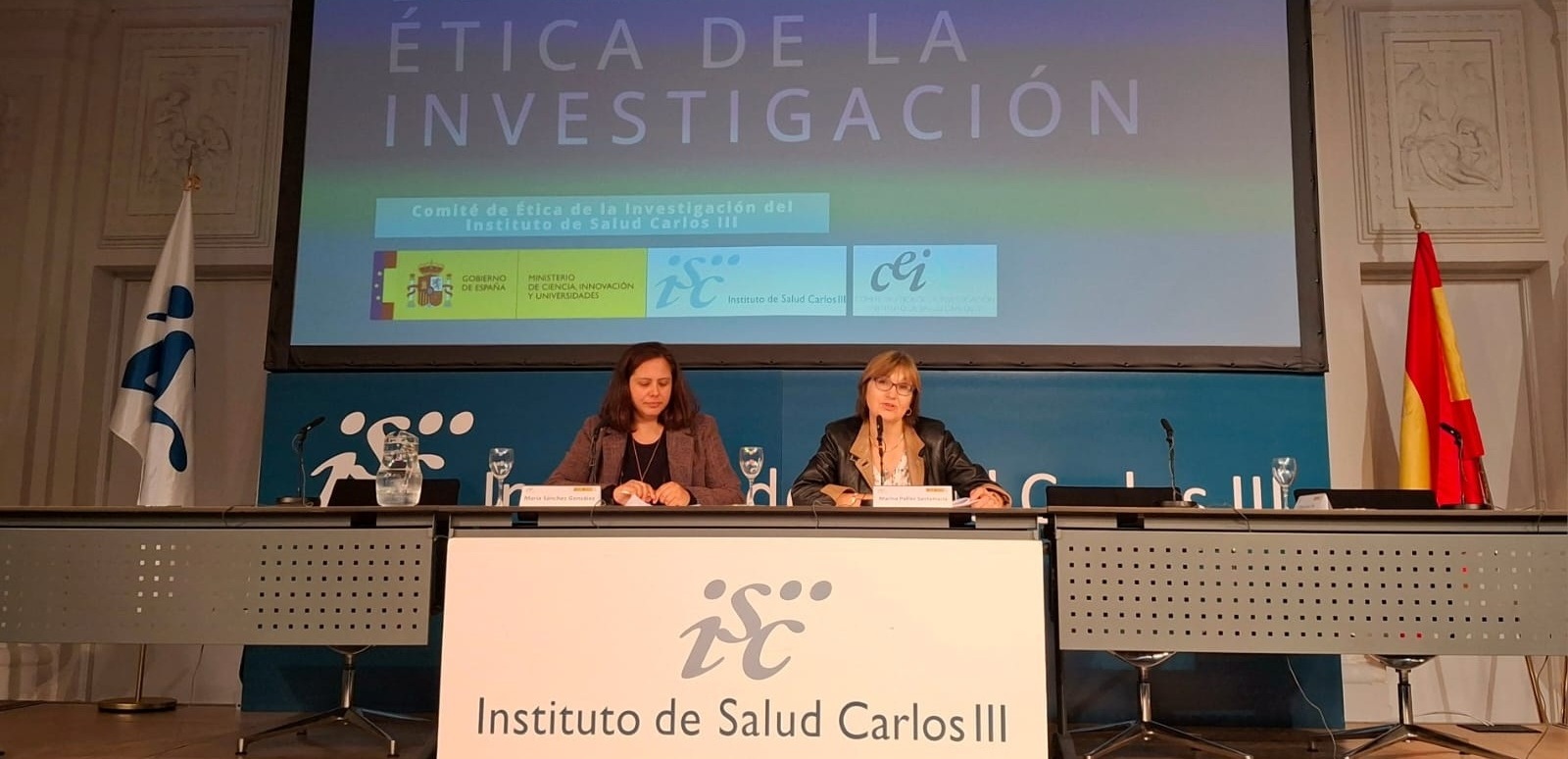 La directora del ISCIII, Marina Pollán -a la derecha-, y la presidenta del CEI del Instituto, María Sánchez González, en la inauguración del encuentro.